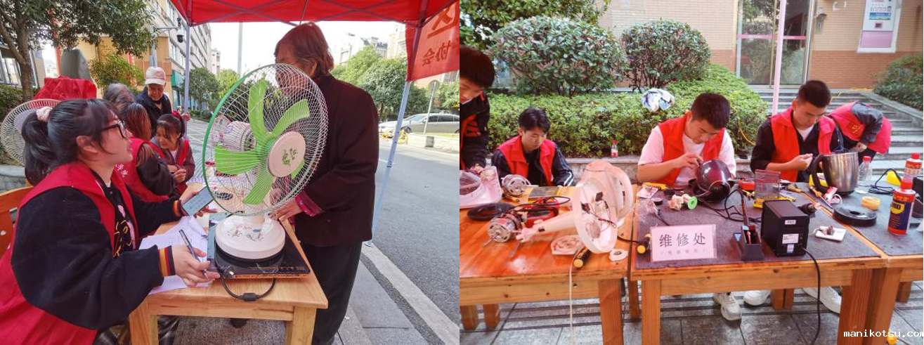 志愿者们从校园走进社区,每次义务维修服务点一搭起来,就会吸引不少人驻足询问。活动中,大家纷纷带来有故障的电风扇、水壶、插座等家电前来维修。志愿者们耐心排查故障,认真检查修理,让一件件废旧家电都“重获新生”。除定点维修外,针对独居老人生活不便,维修队志愿者还将温情送进家中,上门帮助其维修电器、调试网络,真真切切为老人们解决实际困难。