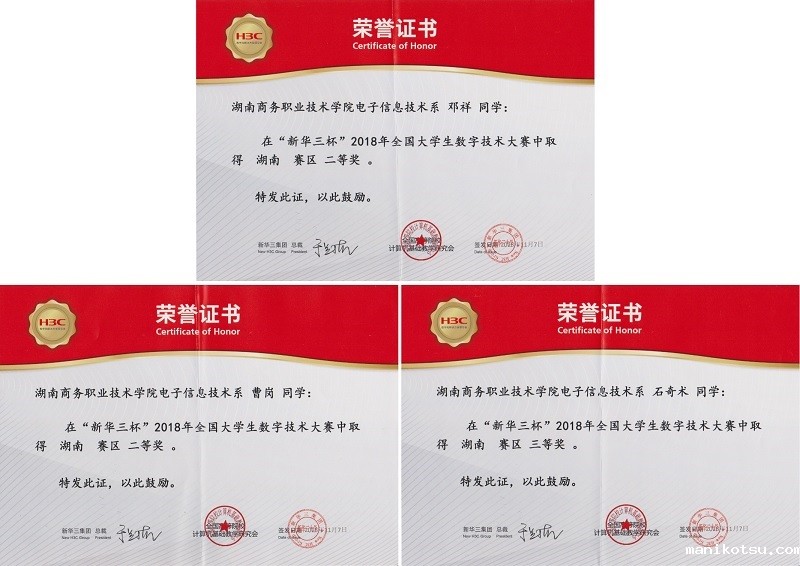 “大赛点燃校园,技术改变人生”。在长沙举办的2018年第八届“新华三杯”全国大学生数字技术大赛中,韦德com计算机网络技术专业16级学生邓祥等在苏命峰、谢林勇等老师指导下,奋勇拼搏、发挥出色,其中:邓祥、曹岗同学荣获二等奖,石奇术同学荣获三等奖。