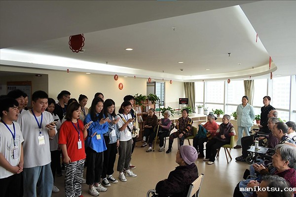 办理了一系列手续,聆听了注意事项讲解后,活动正式开始。在工作人员的帮助下,老人们齐聚大厅,该院师生为老人带来了水果牛奶等食品,送上了精彩的表演,赢得了老人们阵阵掌声。一首《刘海砍樵》更是将表演推向高潮,引得老人们齐声合唱。表演结束后,师生志愿者将老人送回各自房间陪他们拉家常,聆听他们的心声。