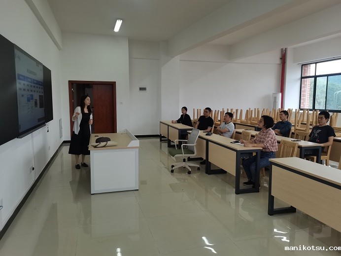 为使新设备更好地服务于课堂教学,2022年5月31日下午,实训与信息管理中心特邀请厂家技术人员在现代商务综合实训中心209教室进行了智慧黑板的使用及维护知识培训,实训与信息管理中心相关人员参加了培训。在培训活动中,技术人员不仅就智慧黑板的基础操作、移动授课、资源获取、无线传屏等功能进行了讲解,还与参训人员进行了互动交流,现场解答了老师们的提问。
