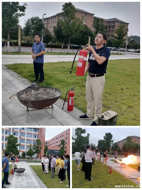为了让大家学会真实火灾情境下的消防灭火器的使用,随后开展了灭火实战演练。
