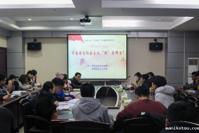 为深入学习宣传贯彻习近平总书记系列重要讲话精神和党中央治国理政新理念新思想新战略,激发大学生对马克思主义理论的学习和传播,响应十九大精神进校园。1月3日晚19点整,由思政课部、校团委、学工处联合举办的“社会主义‘有点潮’”主题研讨会在办公楼521会议室成功举办。思政课部主任邓艳君、学工处处长唐柳荷、校团委书记杨明及学院青年马克思主义协会成员参与了此次研讨会。思政课部肖彬老师、高莉老师担任本次研讨会主讲嘉宾。