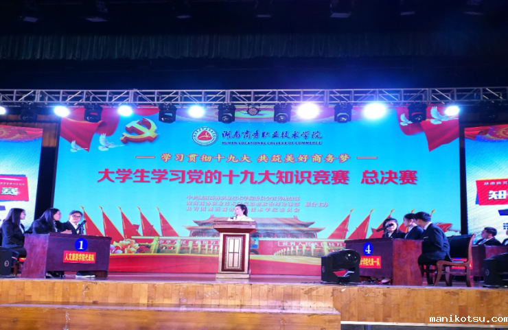 为在全校范围内掀起全面学习党的十九大精神的热潮,贯彻落实习近平总书记系列重要讲话精神和治国理政新理念新思想新战略,进一步激发大学生对思想政治理论学习的积极性,2017年12月26日晚7点,我校在体育馆内组织开展了“学习贯彻十九大 同心共筑商务梦”知识抢答赛活动。本次比赛由思想政治理论课部、宣传统战部、校团委联合举办。校党委书记周忠新、副院长廖良林和思政课部、宣传部、学工处、校团委负责人,以及各二级学院党总支书记到场观赛。