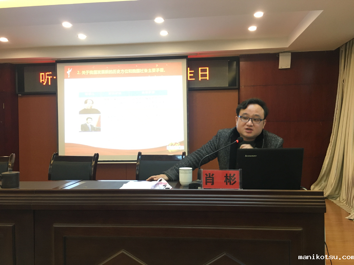 为深入贯彻学习党的十九大精神,岳麓区组织辖区内高校和党校优秀思想政治理论课教师开展了“十九大精神进社区”宣讲活动。思政课部肖彬老师作为长沙市及岳麓区市区两级理论宣讲团成员,于12月20日走进洋湖街道白庙子社区为社区党员群众宣讲“习近平新时代中国特色社会主义思想”。