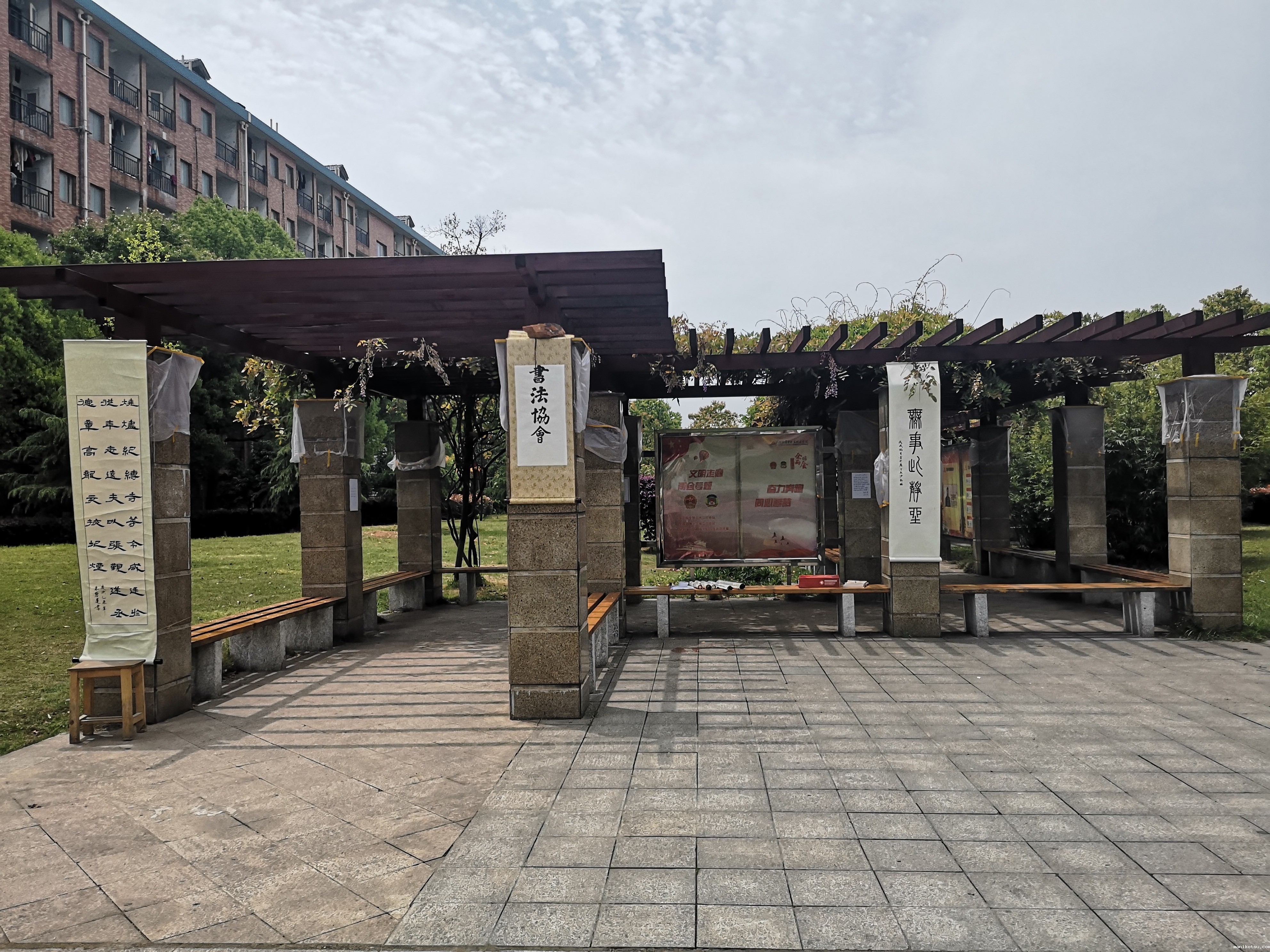 书法协会的会员们对现场场地进行了精心布置,穿上了汉服,将书法按篆、隶、楷、行、草顺序摆放,并且在进展口开展有关于书法知识的有奖问答,活动结束后对活动场地进行清理。