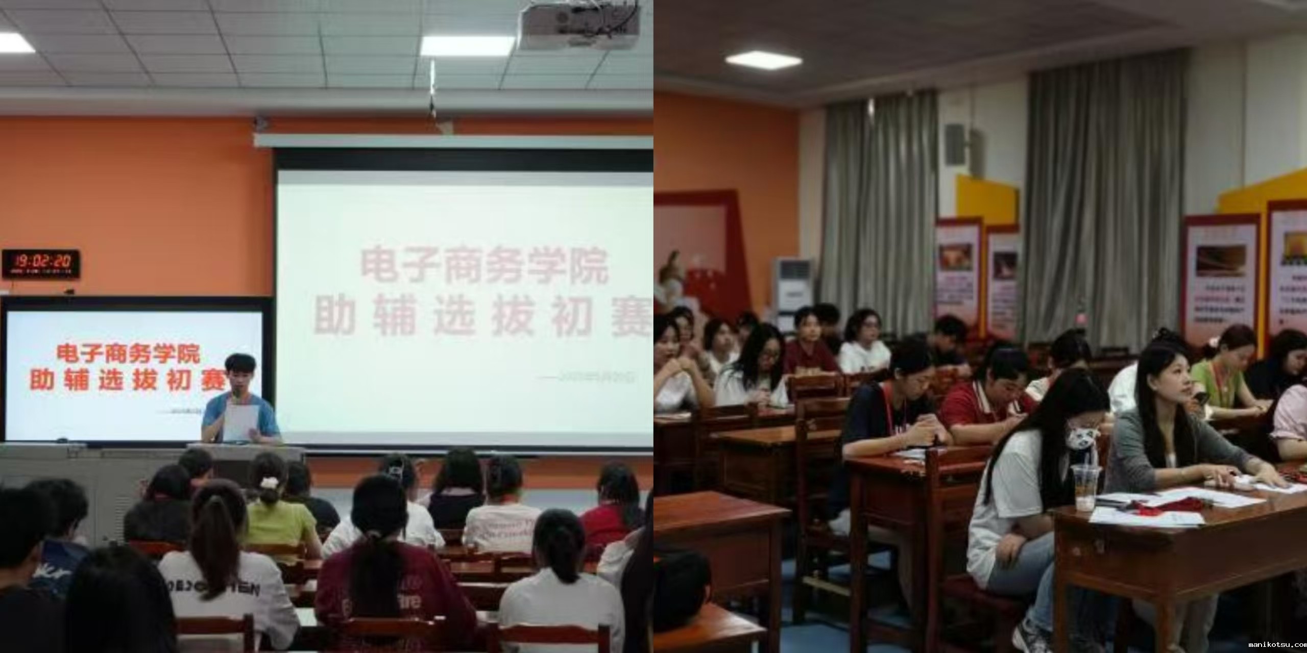 在2025年5月20号,电商学院助理辅导员选拔大赛初赛在博思楼101教室拉开帷幕。本次大赛旨在选拔出有强烈的责任感,具较强的沟通交流、组织管理、创新意和解决实际问题的能力等,担任助理辅导员,协助学院开展学生管理与思想教育工作,为学院发展注入青春活力。