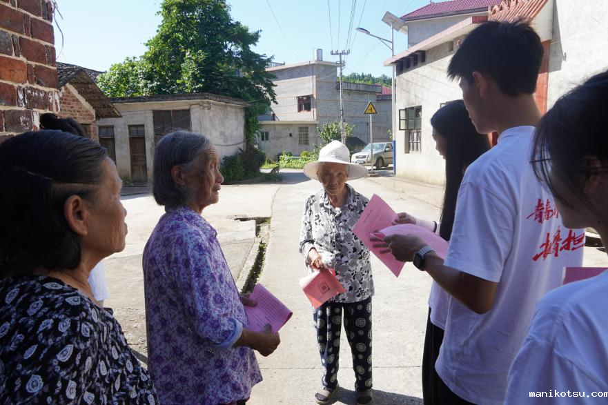 “青青火花”志愿服务队逐户走访村民,挨家挨户地开展安全知识宣传。向村民详细讲解未成年人保护、防溺水、家庭消防安全、燃气规范使用、道路交通法规等内容,向乡村居民普及养老保险缴费政策,引导村民增强安全意识、了解惠民政策。同时,倾听村民在生活中的需求与难题,为后续帮扶行动积累信息,让关怀与安全知识同步送达村民家中。