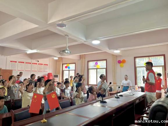 上午9:30,团队成员曹荣身着红马甲开启防溺水知识宣讲,他结合乡村水域特点,用通俗语言讲解“如何预防溺水”“溺水辨别与施救”等内容,剖析案例让孩子们认识到私自下河游泳的危险和防溺水的重要性,课堂上孩子们专注聆听,心中种下安全种子。随后,在曹荣带领下,孩子们整齐站立、举右手庄严宣誓“认真学习防溺水安全知识,坚决做到‘七不两会’……”,宣誓声响彻会议室。这是孩子们对生命的承诺,也是防溺水意识内化于心、外化于行的开始,宣誓后他们的眼神中多了对安全的敬畏与守护生命的担当。
