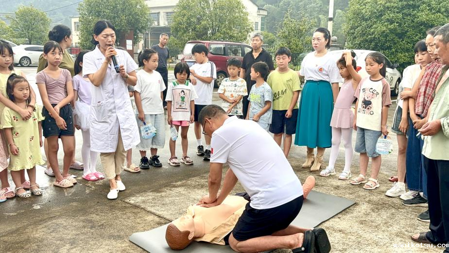 值得一提的是,长塘镇岳峰村委会的龚乐娟同志、湖南体育产业集团乡村振兴工作队的马进同志也来到现场,为孩子们带来了实操演练。龚乐娟同志凭借扎实的专业知识和丰富的实践经验,详细地向孩子和家长们讲解了心肺复苏的操作步骤和注意事项。随后,马进同志亲自示范心肺复苏操作,每一个动作都规范、标准,让孩子们和家长们对心肺复苏有了更直观、深入地认识。