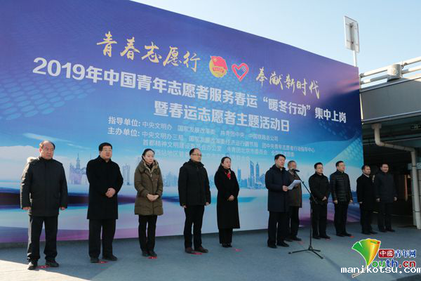 当天上午,2019年中国青年志愿者服务春运“暖冬行动”集中上岗暨春运志愿者主题活动日在北京西站举行,来自铁路、公交、地铁、西站地区和机关、企业等单位的140多名春运志愿者在这里激扬宣誓,统一上岗。
