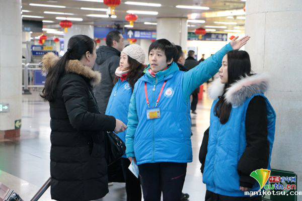 北京西站,青年志愿者为旅客进行指引服务。中国青年网记者 李川 摄