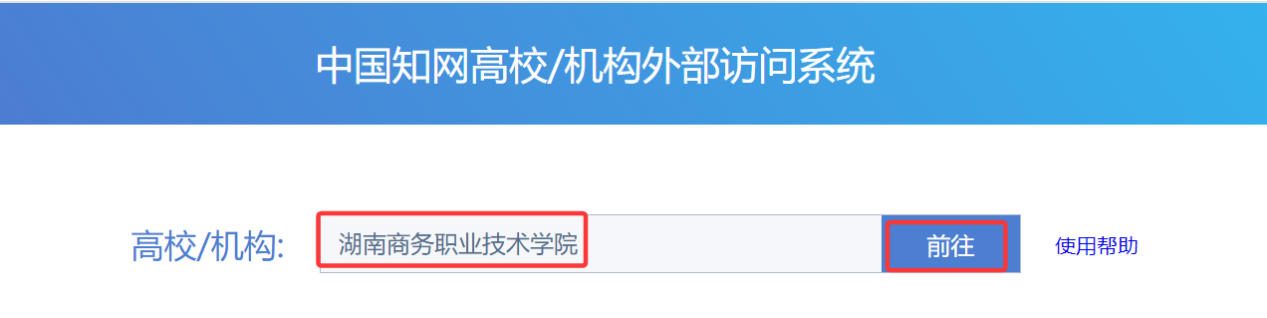 2.进入中国知网高校/机构外部访问系统,在“高校/机构”栏,填写“韦德com”,点击“前往”。
