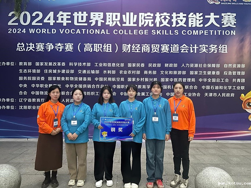 2024 年 10 月 26 日,世界职业院校技能大赛总决赛争夺赛(高职组)财经商贸赛道会计实务组大赛开幕式于沈阳盛大启幕。在此后的三日时光里,来自国内外的 64 支代表队、200多名选手齐聚赛场,展开了一场激烈的技艺较量。最终,在周若谷老师与张悦怡老师的悉心指导下,韦德com代表队的李翩翩、左紫萱、姚亚玲、罗智慧四位同学凭借作品《税智守:金税四期初创企业税务合规核查预警项目》脱颖而出,荣获铜奖。