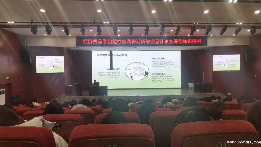 2024年12月24日,经济贸易学院在崇理楼多功能报告厅举行科研能力与论文写作专题讲座,楚怡工匠计划市场营销本科2023级、2024级全体同学参加。讲座由湖南财政经济学院工商管理学院院长杨鹏博士、教授主讲,经济贸易学院禹海慧教授主持。