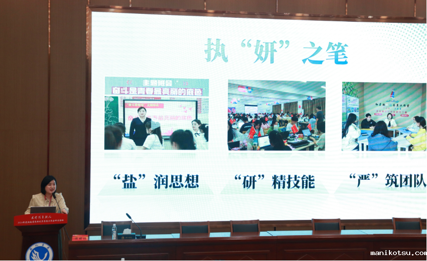 我院会计学院党总支副书记侯妍竹以《执“妍”之笔,书写育人答卷》为题,从育人思路、育人成效的具体情况以及“红蓝领航”辅导员工作室建设的深入思考三个层面进行了全面阐述,获得与会人员高度赞同。她提出,新时代学生工作需以“三个充分”为方法论:充分用好红色资源,将湖湘红色基因融入育人全过程;充分结合学生专业,构建“思政+专业”双螺旋育人模式;充分运用数字赋能,打造线上线下融合的思政教育生态圈。在此基础上,她创新提出“三个转化”工作法:把被动“听”转化为主动“讲”,推动学生从知识接受者转变为价值传播者;把输入的“专业知识”转化为输出的“技能成才”,促进理论与实践深度融合;把“线上流量”转化为“线下成绩”,实现网络思政教育的实效性提升。