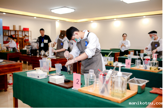 茶形辨识、香味排序、品质审定、对样评茶、茶品设计......此次比赛参照国家职业技能标准和要求,分理论和技能两个模块对参赛选手进行严格评比。评茶师赛道全面考核选手对茶叶外形、香气、品质、拼配技术等综合分析、评审能力。调饮师赛道则侧重考核选手在饮品制作、饮品品鉴、创意饮品等方面的能力,选手需要在规定时间内以茶、奶、水果、蔬菜等天然食材为原料,通过科学配方,设计主题,现场调制一款色、香、味、形俱佳的调饮茶,对选手的临场创意能力、产品研发能力提出了较高要求。