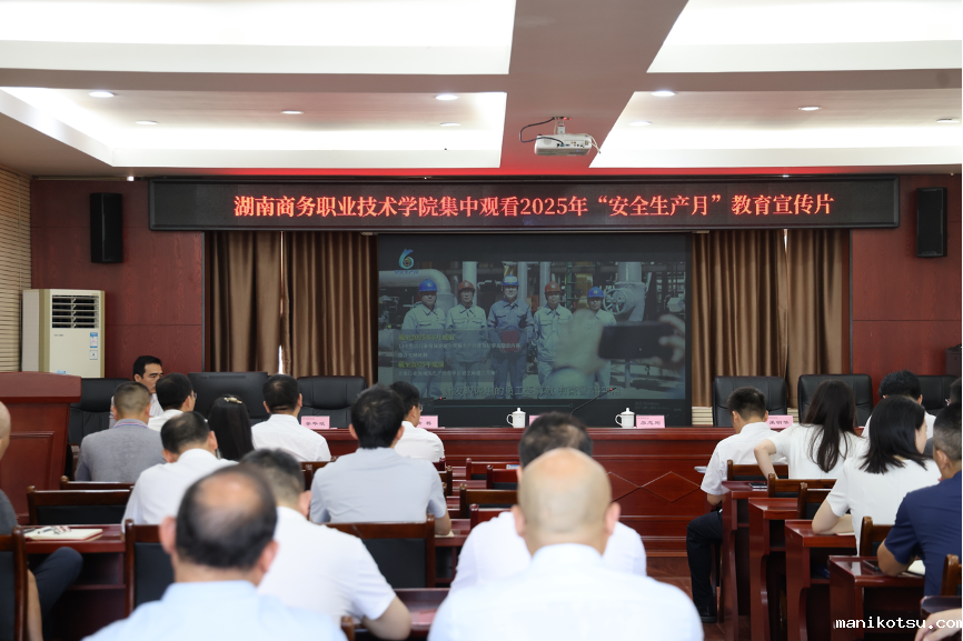 为深入贯彻落实习近平总书记关于安全生产的重要指示精神,扎实推进安全生产治本攻坚三年行动,6月17日,全体校领导及各部门负责人集中观看了2025年"安全生产月"主题宣传片,持续推进以"人人讲安全、个个会应急——查找身边安全隐患"为主题的第24个全国"安全生产月"系列活动。