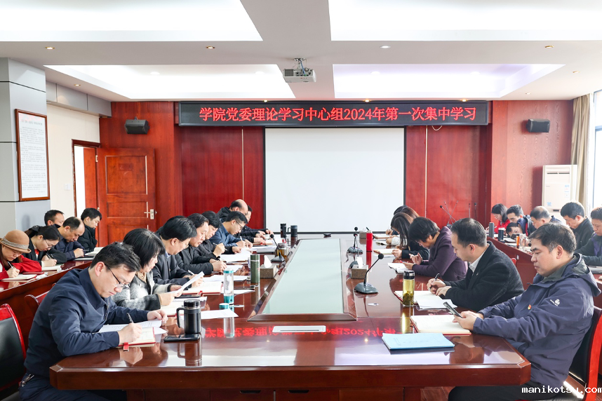 1月12日,学院党委理论学习中心组开展2024年第一次集中学习,围绕“深入学习领会习近平总书记关于全面从严治党、推进自我革命的重要论述”主题,进一步深学深悟习近平新时代中国特色社会主义思想。全体院领导,各党总支书记、党总支副书记、党支部书记,部门主要负责人参加会议。