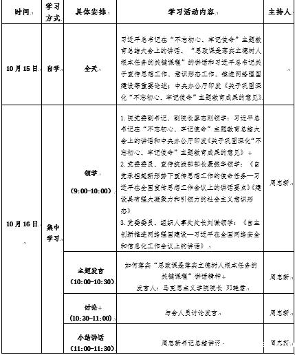 10月15日全天自学,10月16日(星期五)9:00-11:30集中学习