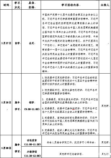 1月27日全天自学,1月28日(星期四)9:00-12:00集中学习