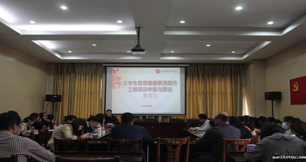 图为长沙职业技术学院学工部黄策先副教授作题为《大学生思想道德素质提升工程项目申报与建设》的主题讲座