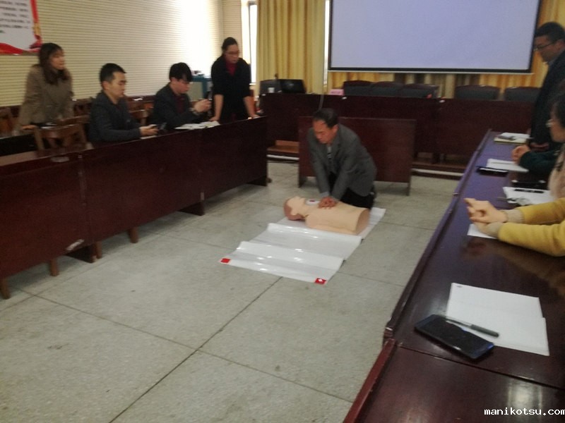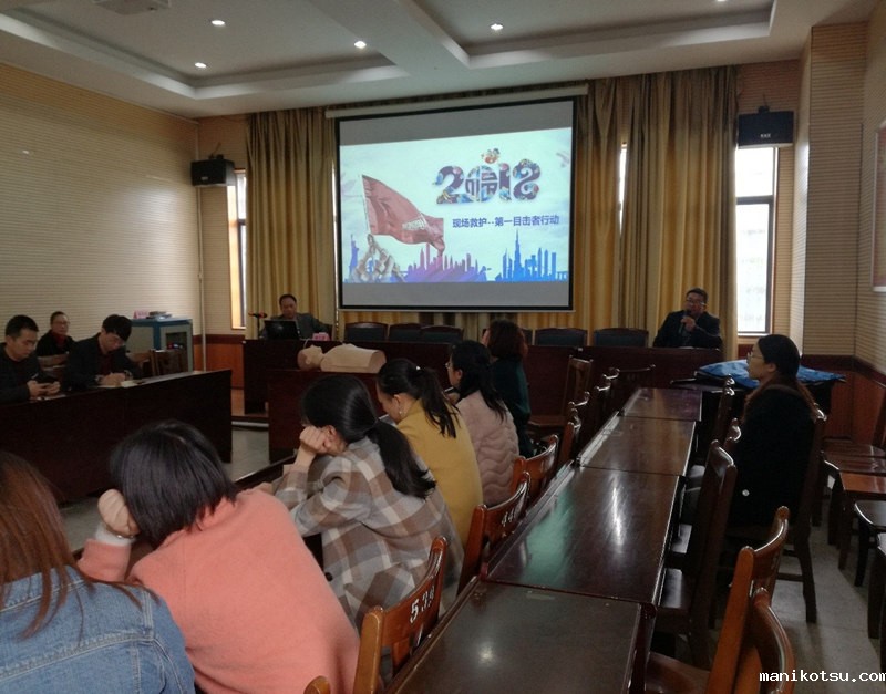 杨文庚教授通过图文结合的方式,详细讲解了突发事故第一目击人急救的步骤、方法及如何抓住最有效的“黄金四分钟”时间去挽救更多的生命,示范了心肺复苏、急救知识的整个操作过程以及注意事项。重点介绍了气道异物梗阻、胸外心脏按压和人工呼吸的操作,并在模具上详细地进行了示范演示,辅导员老师踊跃参加现场操作,通过操作人体模型、现场提问等进一步巩固了所学知识,掌握了现场急救的基本技能。