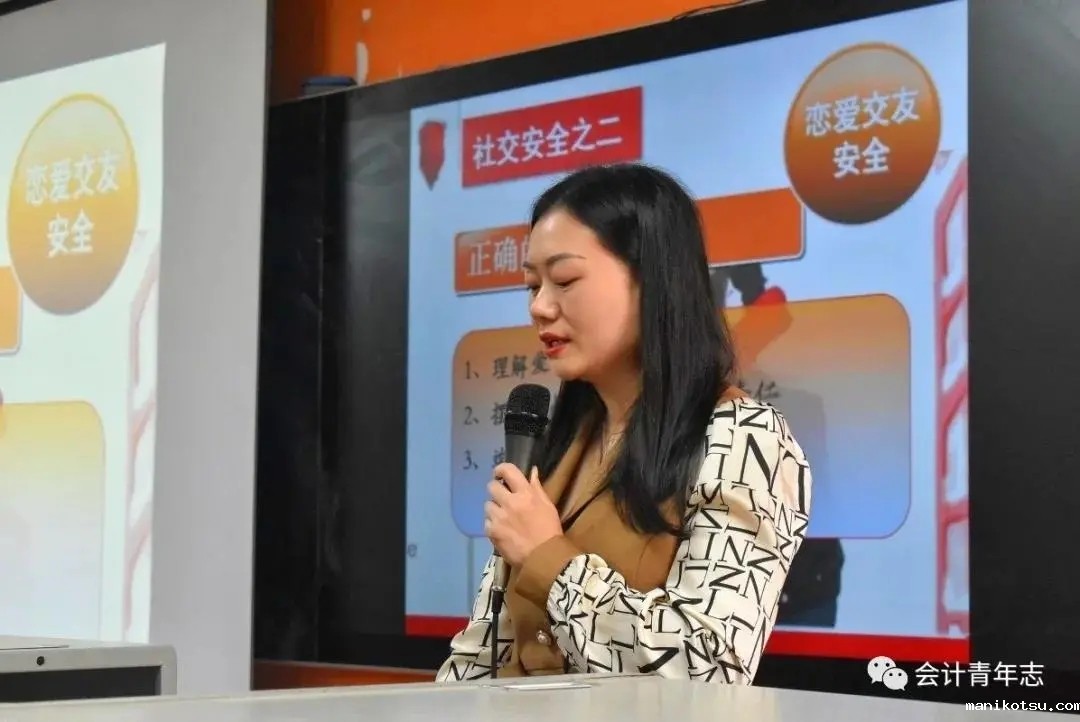 谭灿娇老师从强调社交和社交安全的重要性引出本期班会主题,通过播放微视频《老乡》、《求职风波》和演绎情景剧《爱的代价》等方式展示典型案例,并提出社交安全相关注意事项,她谈到,同学们在社会交友中要择善而从,注重培养真诚可靠的友谊;在恋爱交友中要端正恋爱动机、树立正确恋爱观、摆正爱情的位置。接着,她提到,在求职过程中要擦亮双眼,提高警惕,谨防中介诈骗。