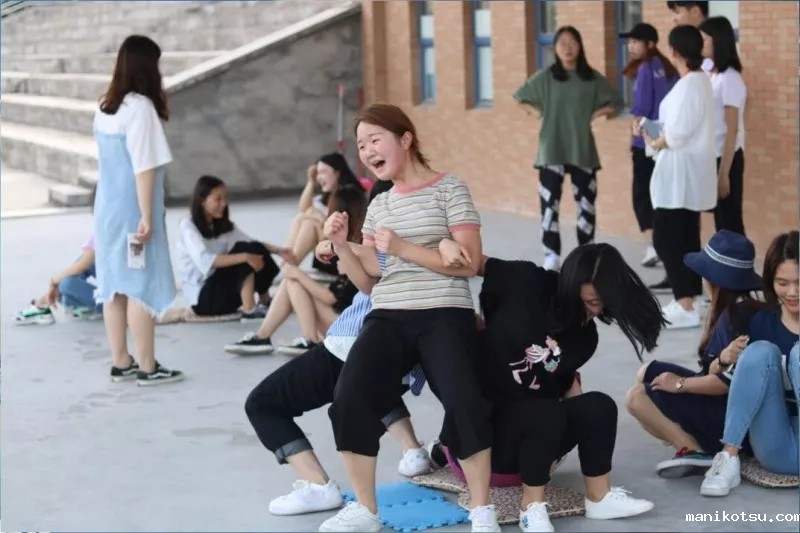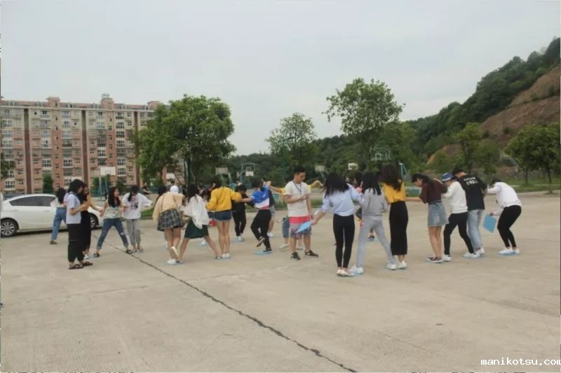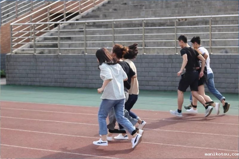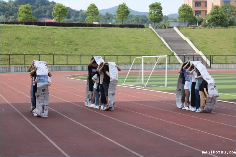 小帅哥:在操场上聚齐了这样一群人,用报纸做成“风火轮”轮前进,在扶持着对方绑腿跑向终点。在欢声笑语中紧凑着围在一团……虽然场面有些尴尬,但是大家硬着头皮在这个活动中玩耍 游戏很是热闹。