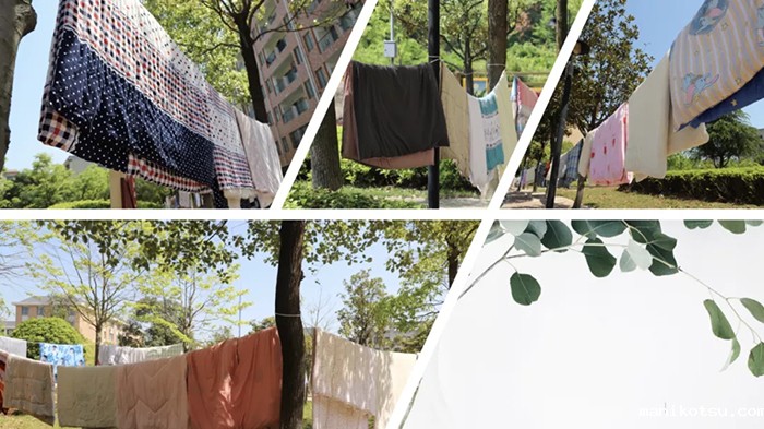 近日,长沙晴空万里,户外气温高达30℃。一大早,宿管阿姨们就已经绑好晾晒绳,和辅导员们一道搬出了同学们“沉睡”了小半年的被子,享受着新日暖阳。为避免晾晒错落,宿管员们还贴心地为同学们的被子打好标签。