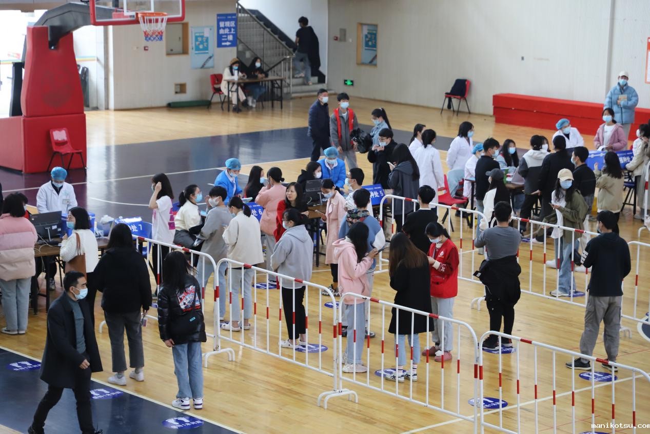 按照现场宣传牌的指示,学生有序的进行疫苗接种。