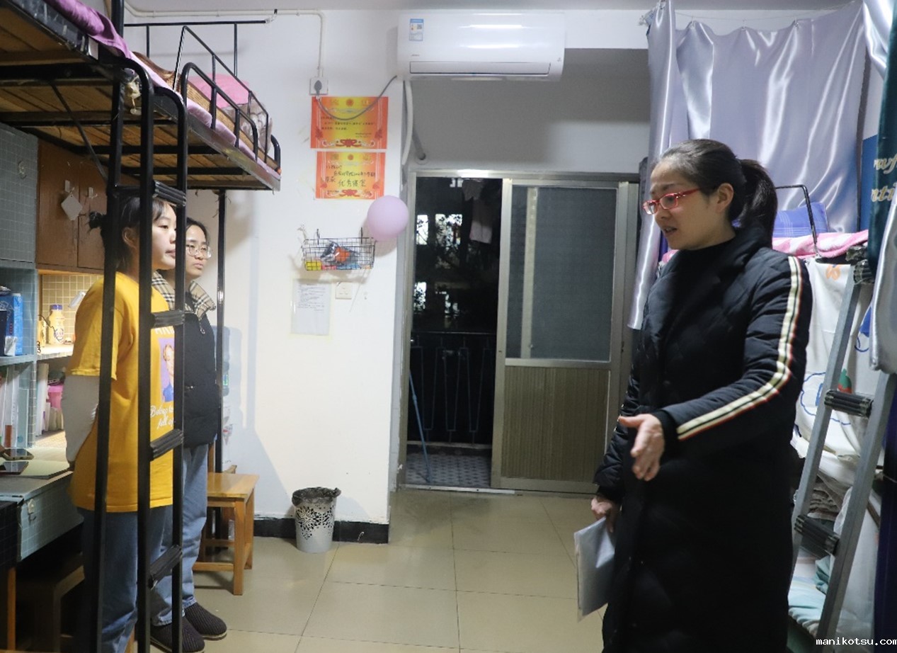 会议结束后,全体学管人员走进学生寝室,进行宿舍走访,查看学生使用电器情况,对学生寝室的安全做指导工作。