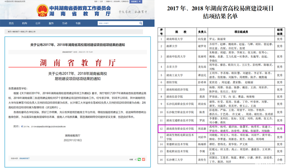 ▲省教育厅《关于公布2017年、2018年湖南省高校易班建设项目结项结果的通知》