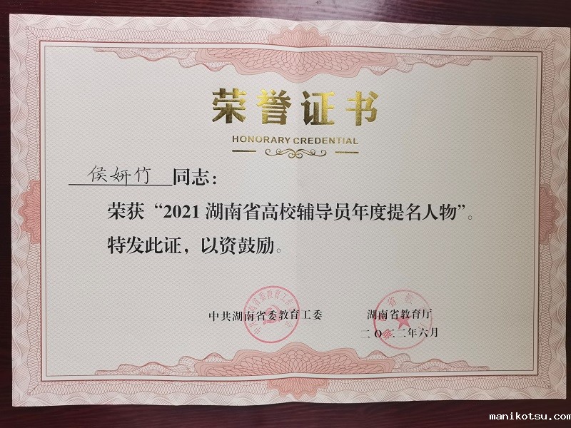 6月10日,由省委教育工委、省教育厅举办的“2021年湖南省高校辅导员年度人物”答辩评选活动结果揭晓,韦德com电子商务学院辅导员侯妍竹老师以“做‘yan’味辅导员,为学生‘三餐四季’增味添彩”为主题,针对学生的思想政治教育工作,分享了她的育人目标、育人思路和育人实效。凭借其扎实的理论功底、丰富的实践经验和良好的心理素质,获得了评委们的高度肯定,荣获“2021湖南省高校辅导员年度提名人物”。