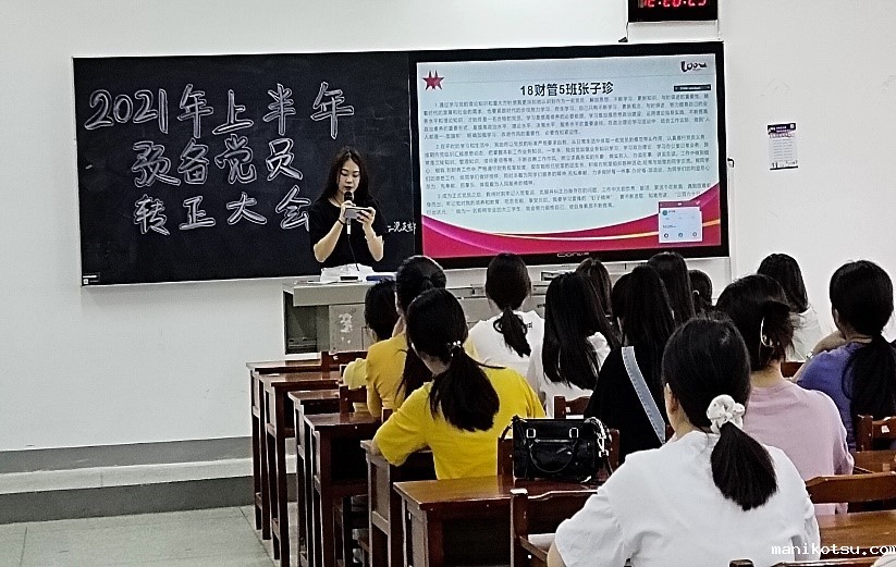 18财管5班张子珍:通过学习党的理论知识和方针政策使我深刻认识到作为一名党员,学习是提高修养的必要前握,只有不断学习,更新观念,与时俱进,努力提高自己的业务水平和理论知识,才能保持一名党员的先进性。我自觉加强业务知识学习,学习政治理论、办公室日常业务、文秘知识等等。现担任团支书一职,积极为班上组织各种活动,树立好榜样,为同学们做好每一件事,无私为同学们服务。成为正式党员后,我将时刻牢记入党誓词,克服并纠正白身存在的问题,工作中大胆负责,脏活、累活干在前面,遇到困难挺身而出。牢记党对我的培养和教育,吃苦在前,享受在后,做为一名即将毕业的大三学生,我会努力锻炼自己,不断提高自身综合素质。