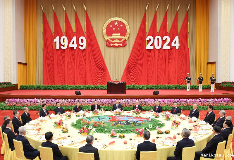 9月30日晚,庆祝中华人民共和国成立75周年招待会在北京人民大会堂隆重举行。中共中央总书记、国家主席、中央军委主席习近平出席招待会并发表重要讲话。(新华社记者 谢环驰/摄)