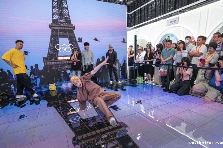2024年9月14日,在2024年服贸会国家会议中心综合展区的主宾国法国展台,中法两国街舞好手在表演霹雳舞。(新华社记者 陈晔华/摄)