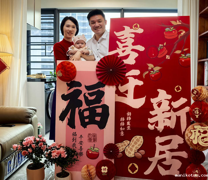 澳门创业青年黄滋才(右)和家人在“澳门新街坊”的家里合影(2024年12月6日摄)。(新华社发)