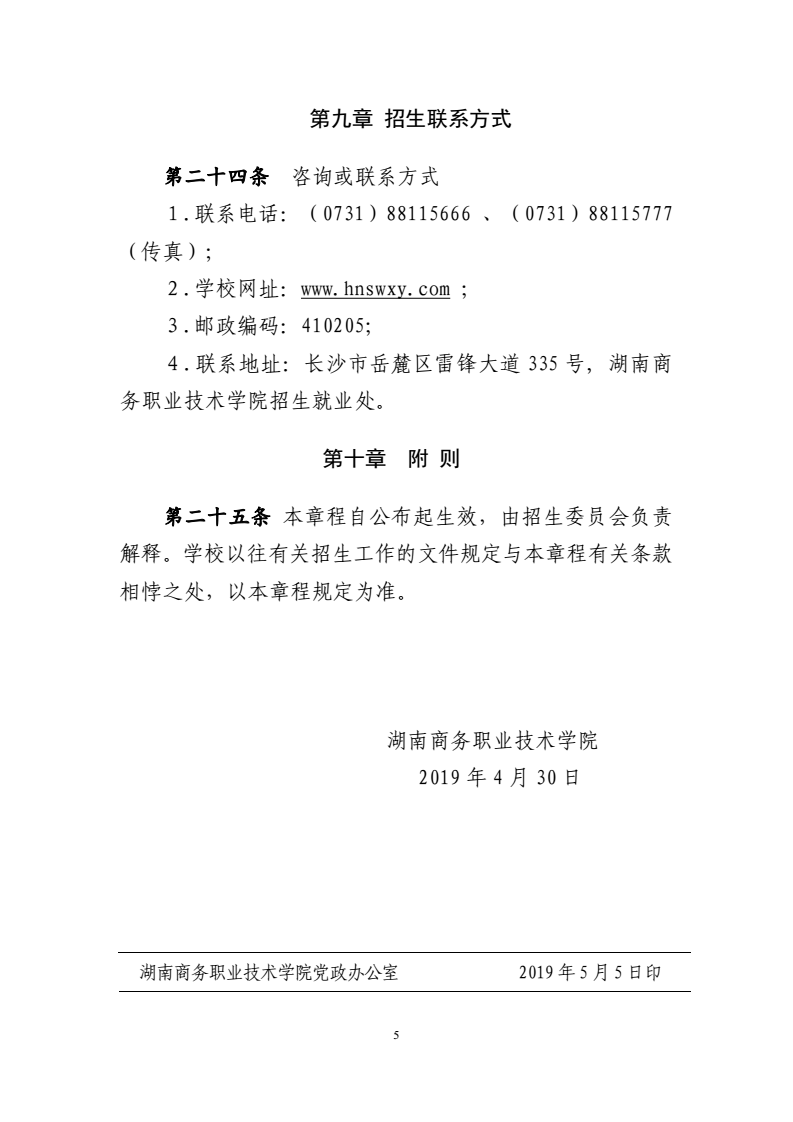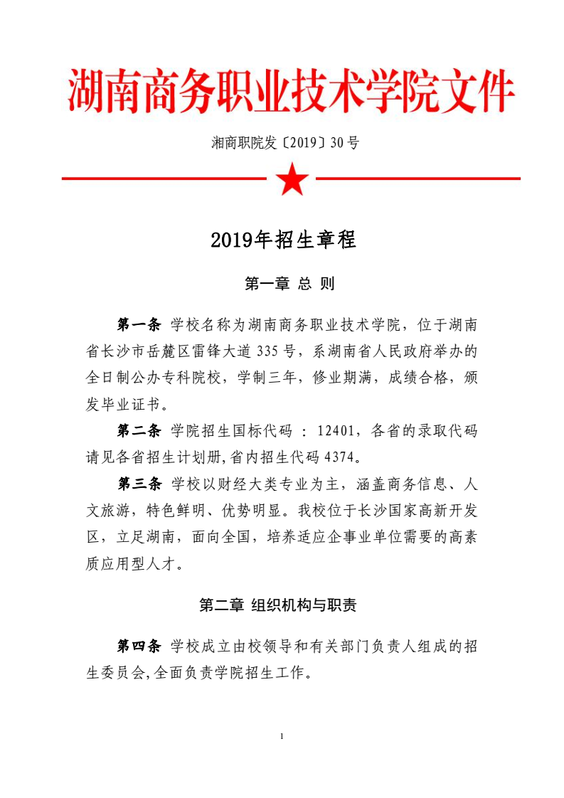 2019年招生章程