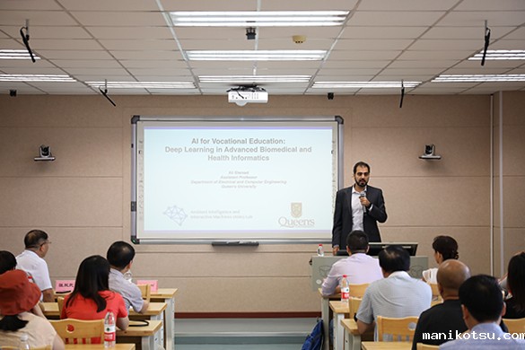 在讲座环节,来自加拿大女王大学的Seyed Ali Etemad教授作了题为《Al for Vocational Education:Deep Learning in Advanced Biomedical and Health Informatics》的主旨授课,他结合自己多年的科研成果和教学经验,从人工智能技术应用层面和人工智能人才培养层面阐述了在产业结构转型升级、人工智能产业气势如虹的背景下职业教育如何培养在智能制造、智能驾驶、智能金融、智慧医疗、智慧交通等产业领域的技术型人才。讲座紧密结合实际,内容丰富、思想深刻,既有理论的高度又有实践的深度。企业代表和学校专业教师代表,结合自身工作及研究方向,就人工智能相关问题与Seyed Ali Etemad教授提问交流,现场气氛热烈,教授答疑深入浅出、形象生动、引人深思。