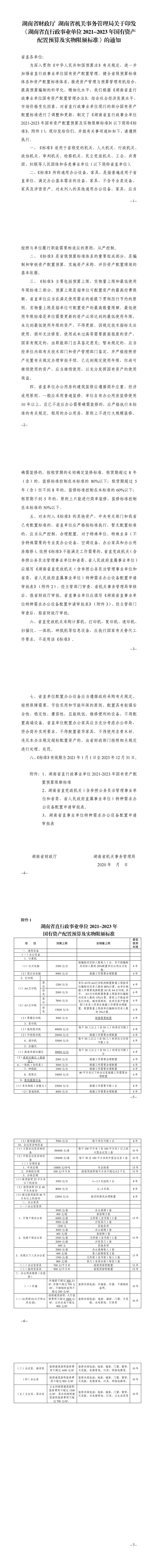 湖南省财政厅 湖南省机关事务管理局关于印发 《湖南省直行政事业单位 2021-2023 年国有资产 配置预算及实物限额标准》的通知