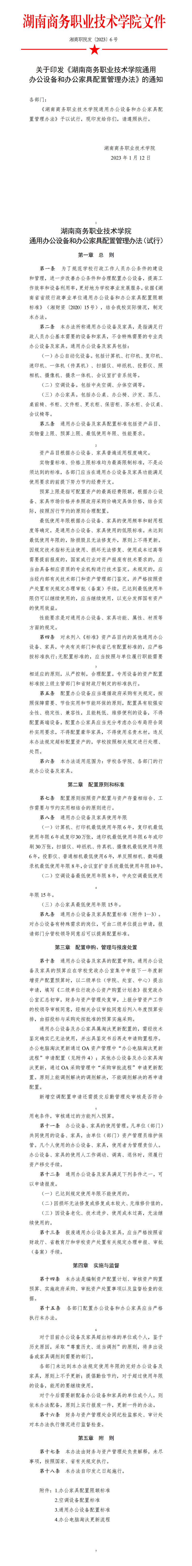关于印发《韦德com通用办公设备和办公家具配置管理办法》的通知