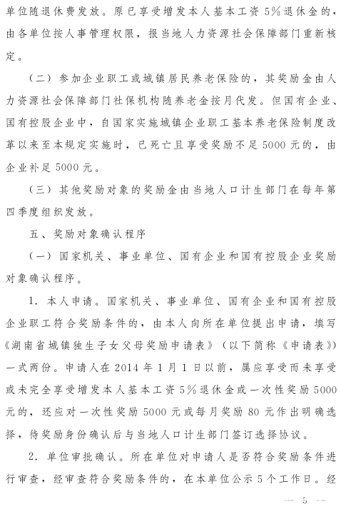 湖南省人民政府关于印发《湖南省完善城镇独生子女父母奖励办法若干规定》的通知