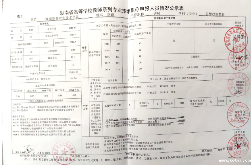 关于公示2019年高教系列高级职称申报人员校内测评结果及公示表的通知