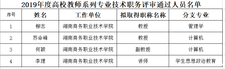 关于2019年度高校教师系列专业技术职务评审通过结果公示的通知
